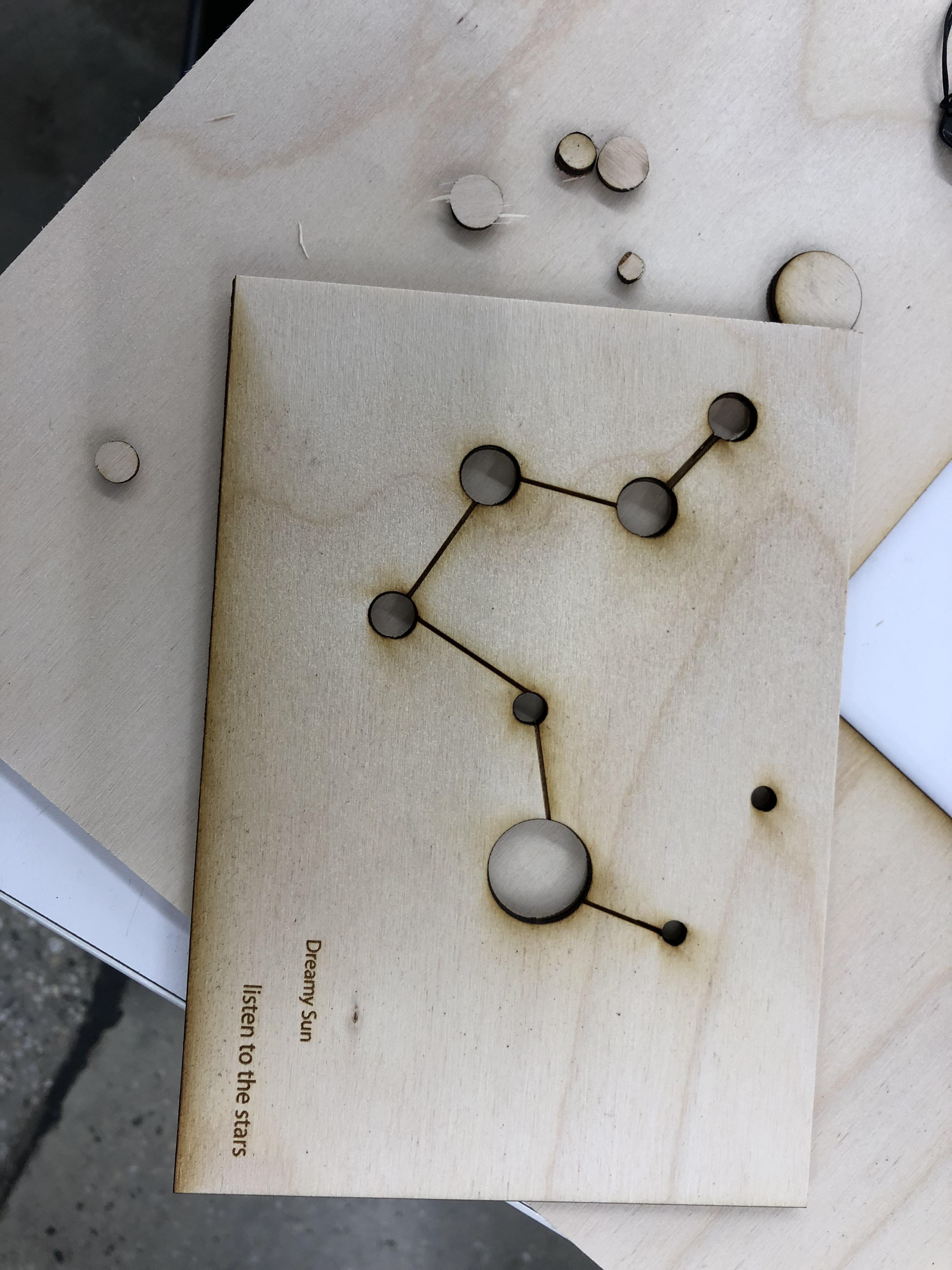 the box I made shows an start-like image. each holes on it will be the "start" that we are touching for and listening of.