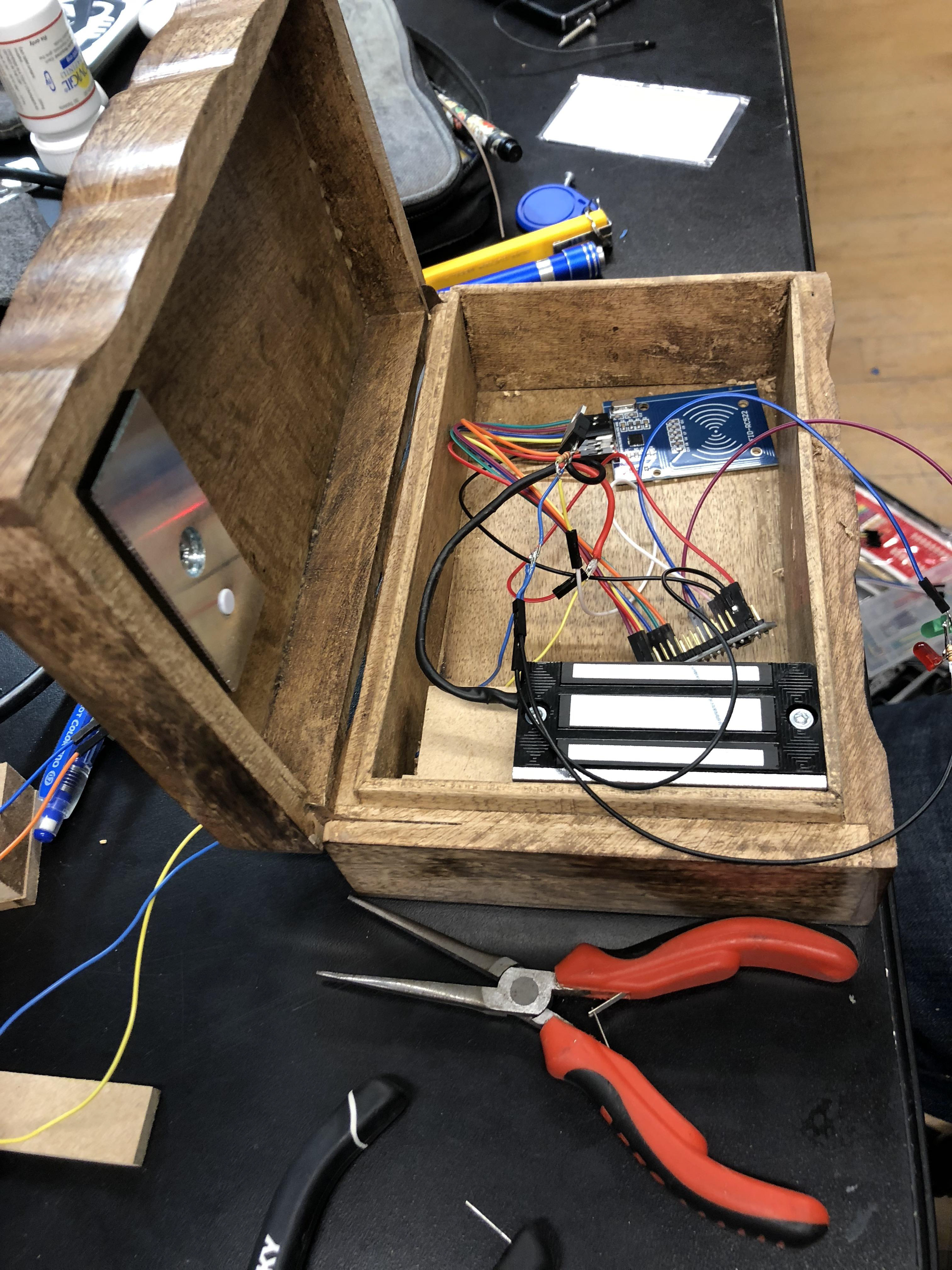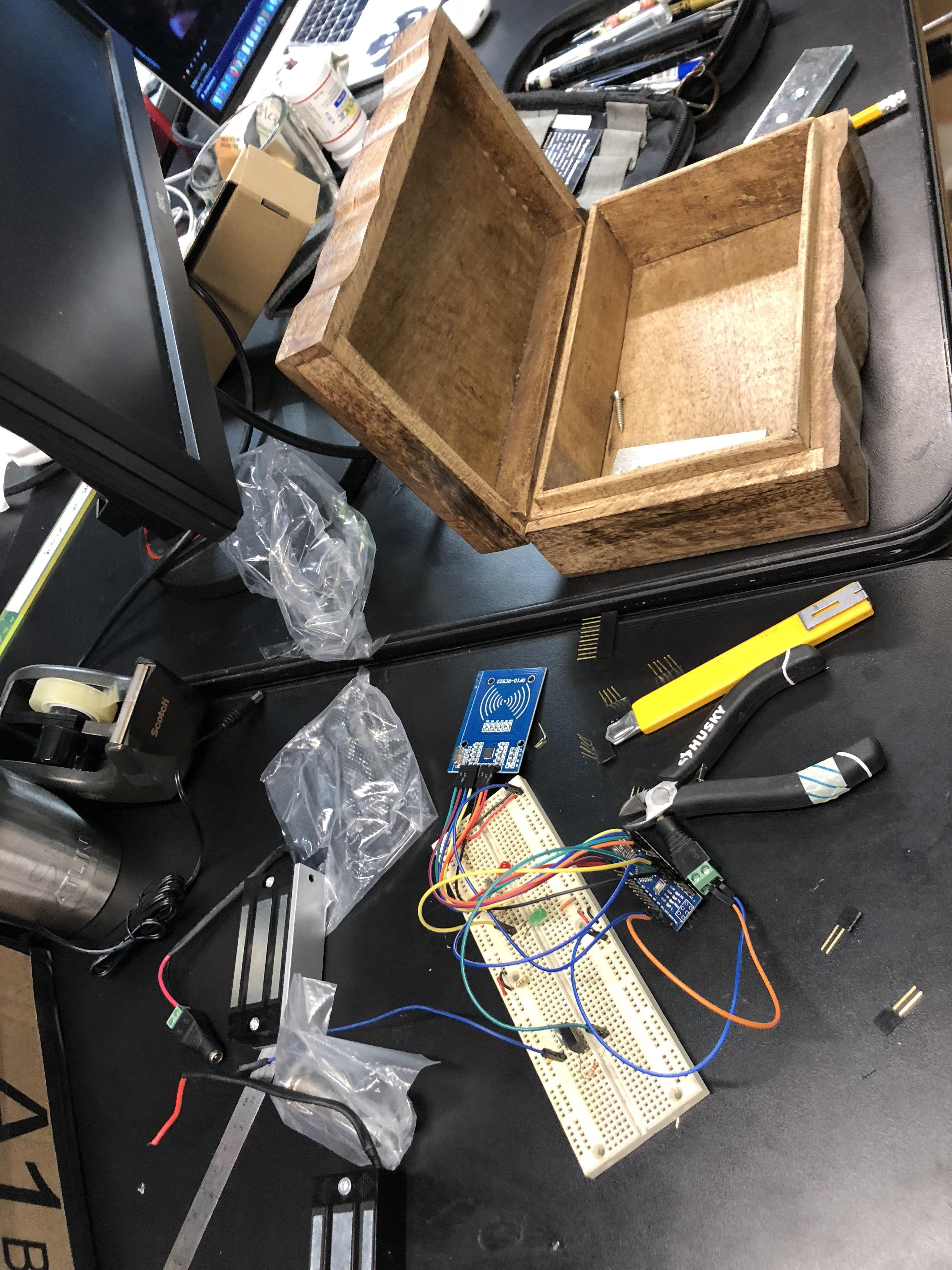 Me and Sid will do collaboration with the Halloween Musical Theatre. And we both chose to work with the idea of the lock box that we both are interested with. After talking to Rob who is in charge of the part of the theatre, we were all agree fit in the idea of make a RFID lock boxes for people to find and open. And the interaction between audiences and the box will be finding that box and try to open it with different IDs, and the LEDs that outside the box will be the indicators of success or failure.
