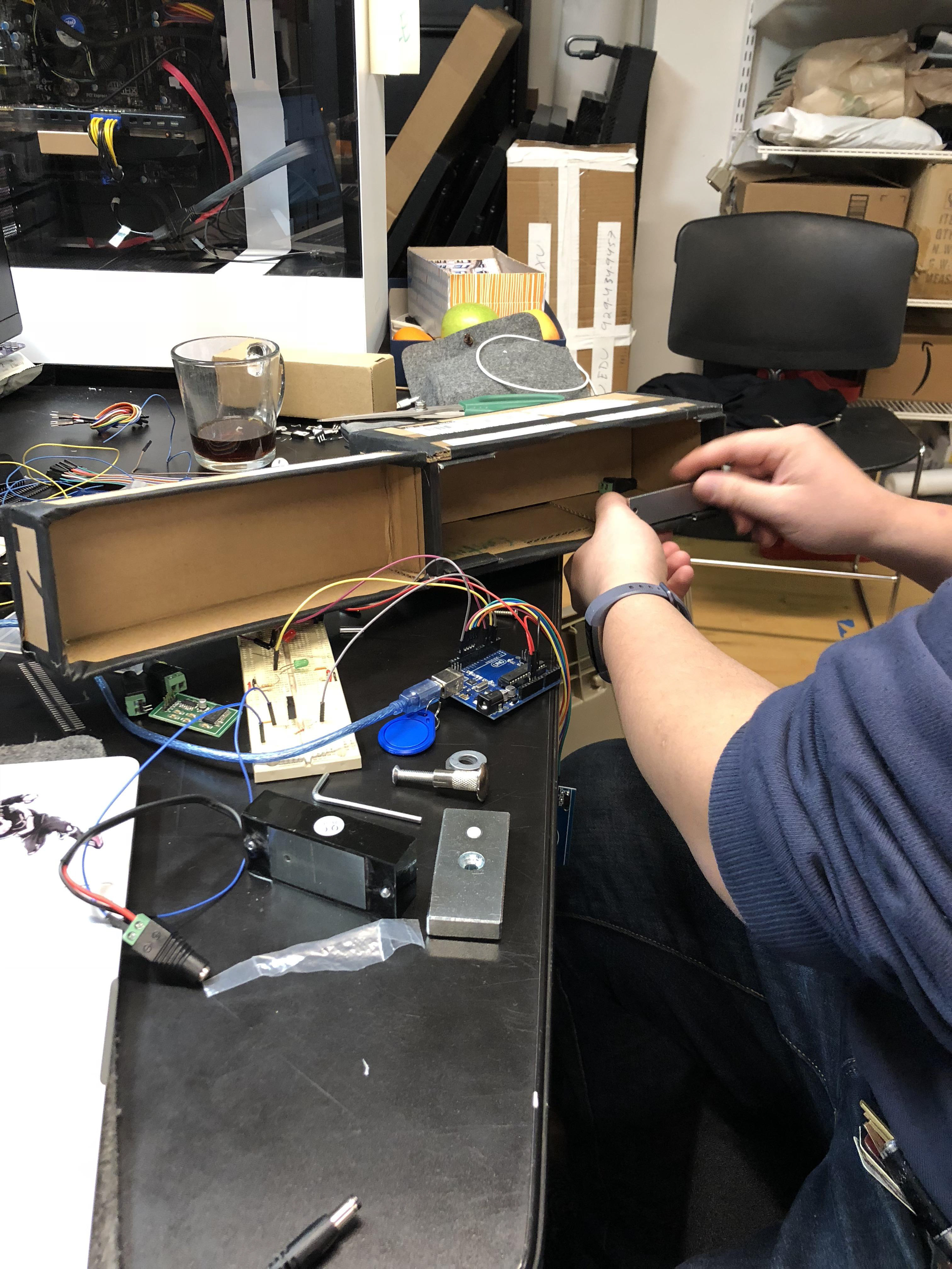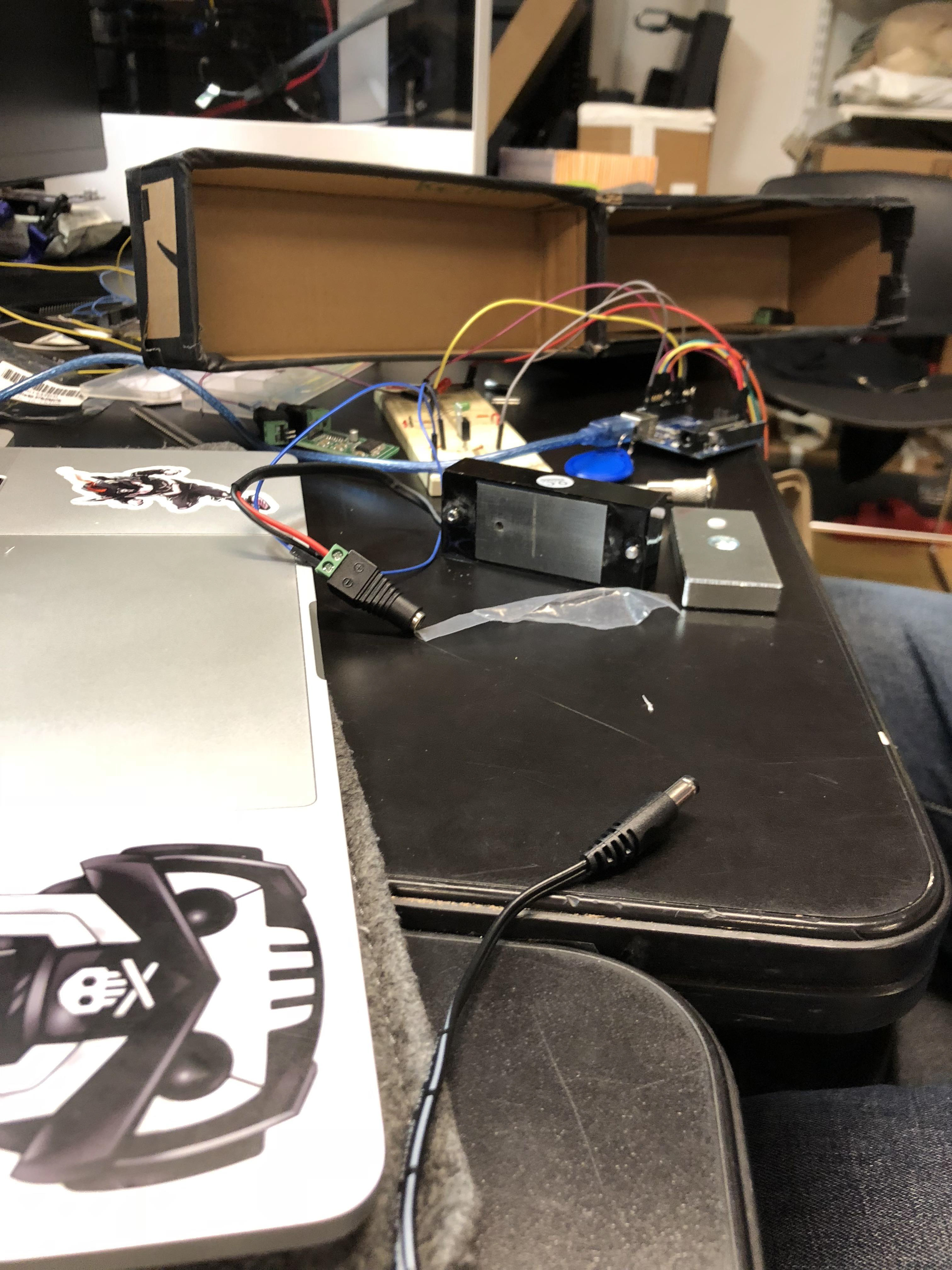 Then we figured out that the dv power of the electronic magnet locks can be linked directly to the board ( thanks to Amika!) Then we got the wires as simple as possible.